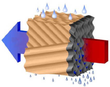 ساختار پد سلولزی به گونه ای است كه شيارهای با زاويه 45 و 60 درجه، شيارهای لايه کناری را با زاويای 15 و 30 درجه قطع مي كند. اين در حالی است كه لايه نازك آب روی سطوح صلب پد به سمت پايين در حركت است و هوا از منافذ باز بين لايه ها عبور می كند.